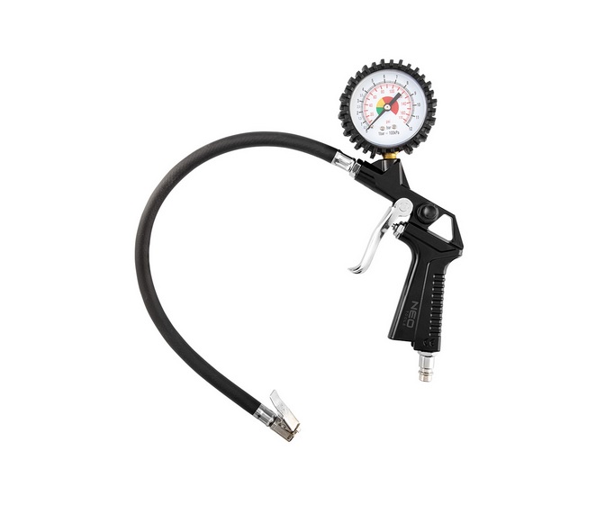 Plnič pneumatik s manometrem.
